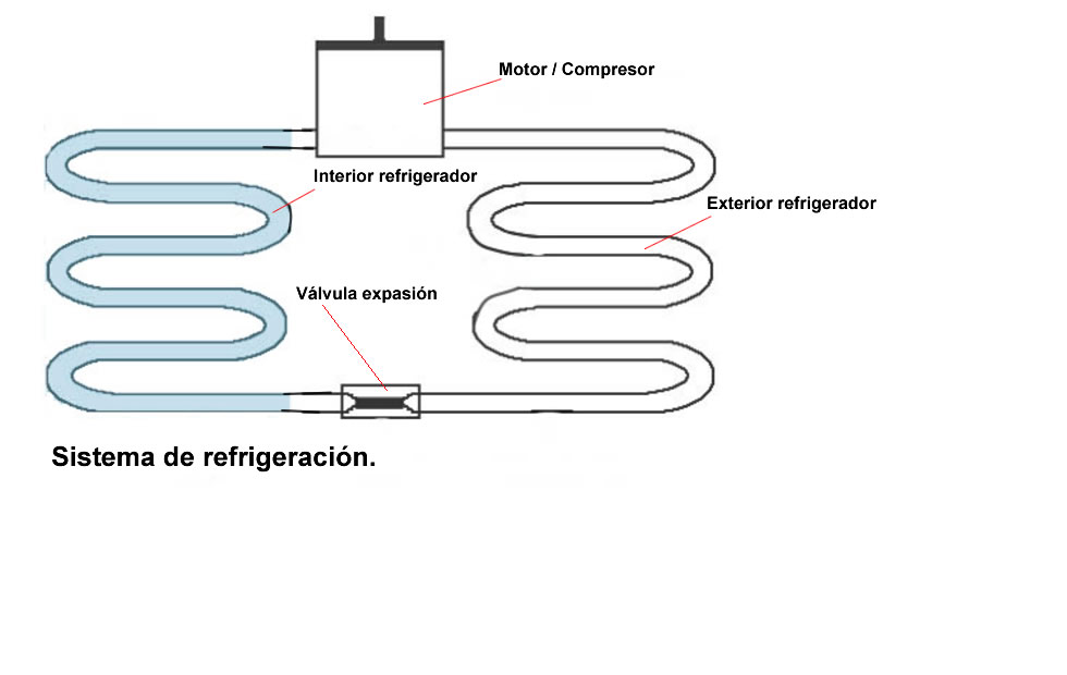 Los refrigeradores son equipados con motor eléctrico que impulsa un compresor. Dentro de un circuito cerrado comprime gas que luego es liberado a través de una válvula hacia un radiador interno del gabinete de la nevera. Una vez que el gas expandido vuelve a calentarse, vuelve al compresor, donde se inicia nuevamente el ciclo.